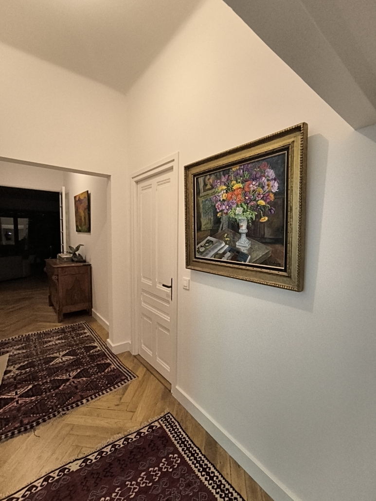 Les radiateurs, portes et fenêtres ont également été repeints pour garantir unité visuelle et continuité esthétique. Ce travail précis permet d’uniformiser l’ensemble des boiseries et éléments techniques, créant une finition cohérente et élégante dans chaque espace de l’appartement.