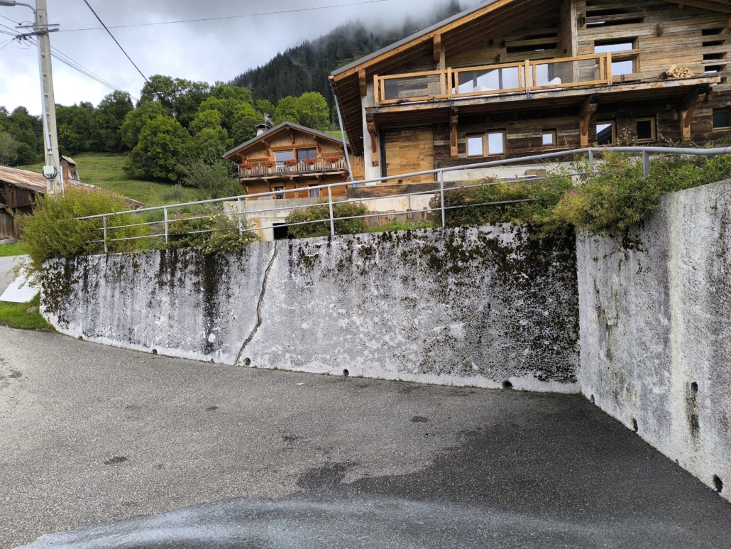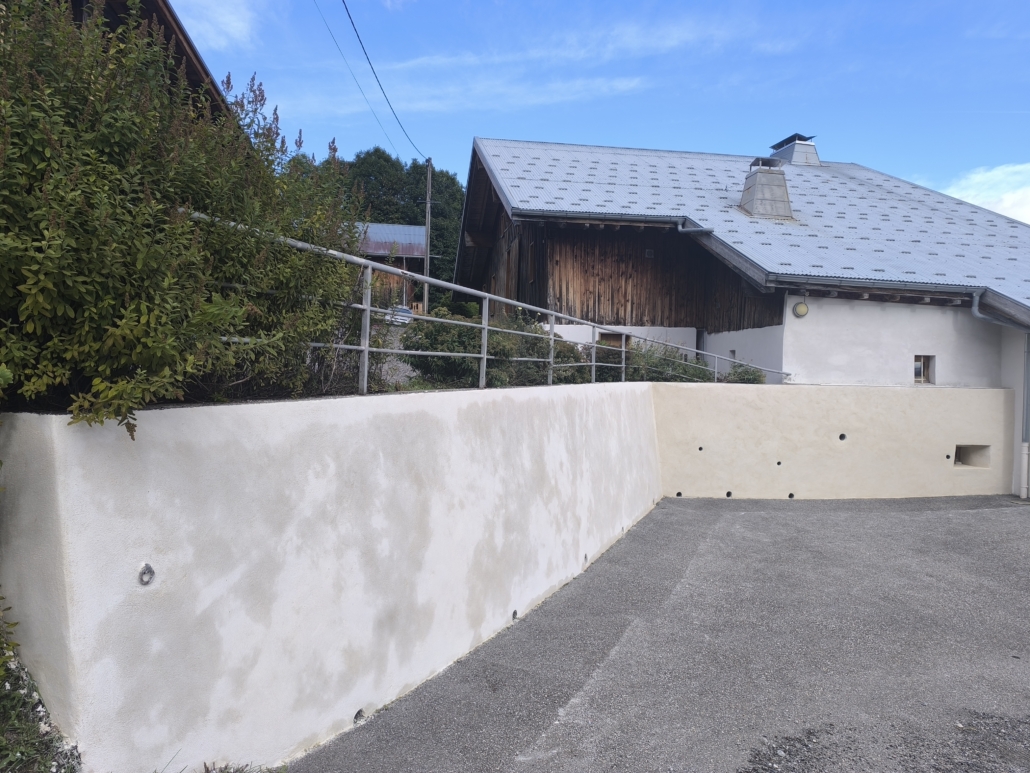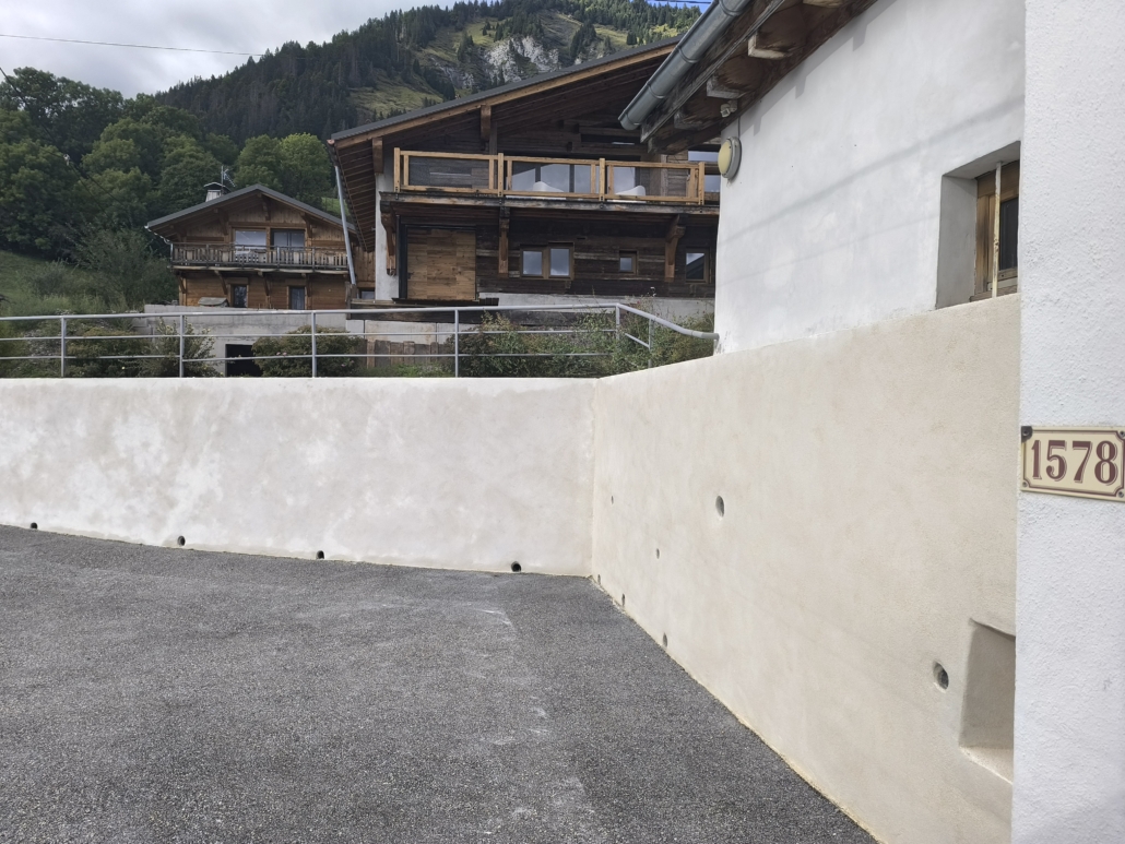 Dans le cadre d’un chantier de remise en état à Praz-sur-Arly, notre équipe est intervenue pour la réparation complète des murs d’un parking, avec une attention particulière portée à la durabilité et à l’esthétique des finitions.